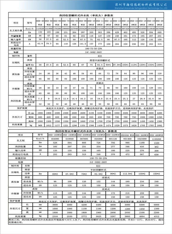 熱回收冷水機(jī)組分為:水冷螺桿式和風(fēng)冷螺桿式熱回收冷水機(jī)組兩種,又名熱回收型螺桿式制冷機(jī),水冷式需要配合冷卻塔使用,制冷效率高于風(fēng)冷式,但風(fēng)冷式有安裝方便的優(yōu)點(diǎn),因此它們各有所長,廣大用戶朋友可根據(jù)自己的實(shí)際情況選用適合自己的熱回收冷水機(jī)組。如果您不知道應(yīng)該怎么選用,可致電我們技術(shù)工程師咨詢!
